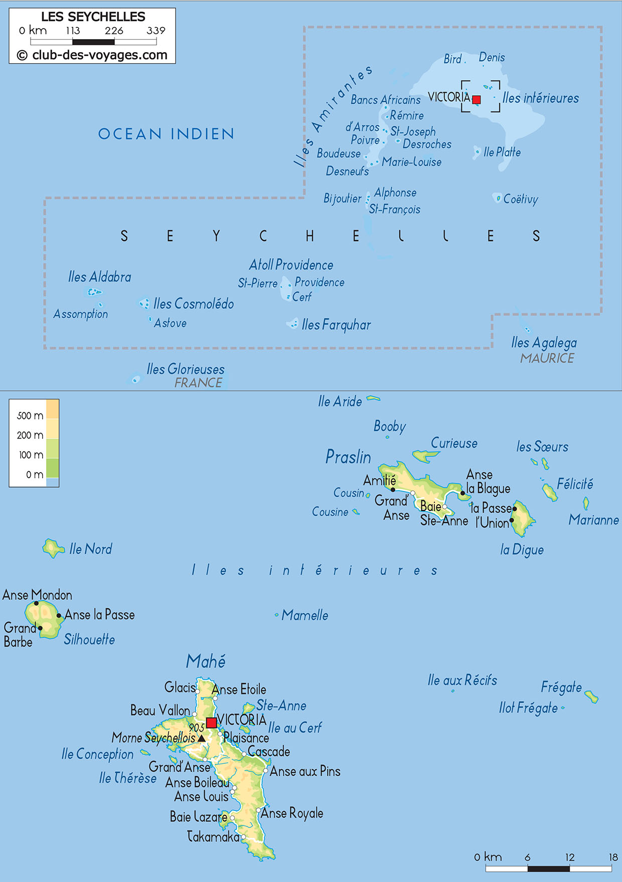 Nos différentes cartes des Seychelles à explorer: carte physique, carte routière, vue satellite. Pour tout savoir sur la géographie des Seychelles.