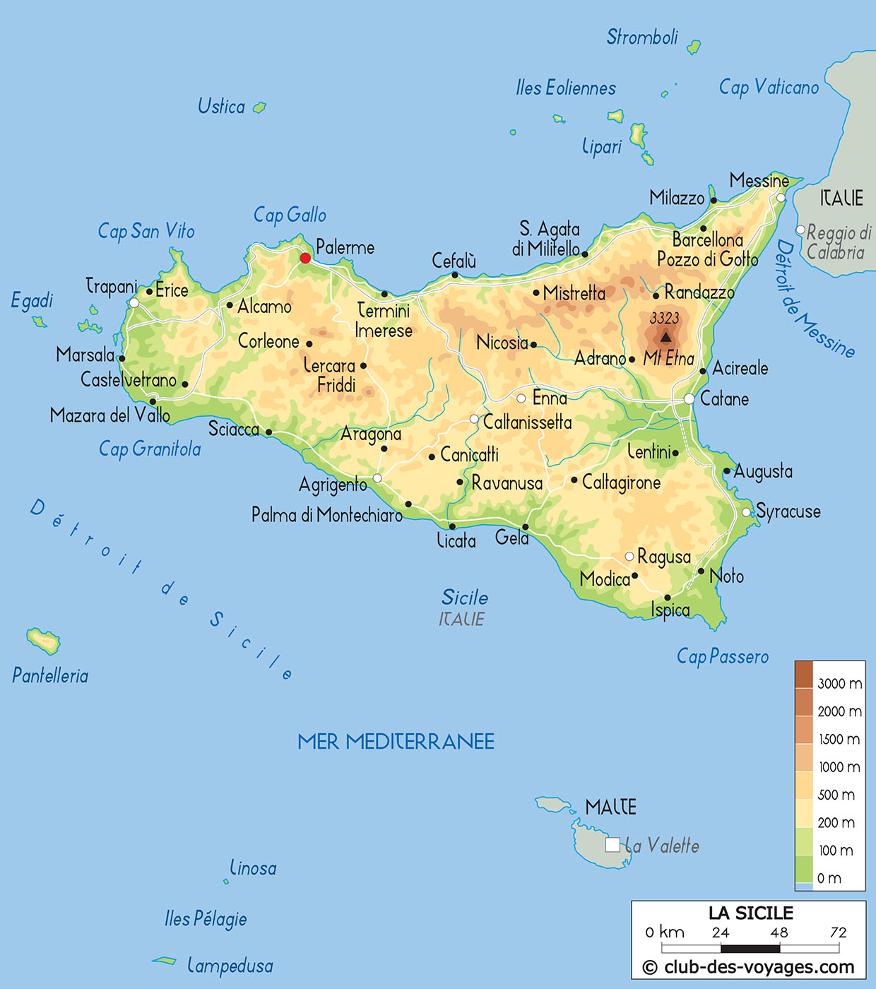 Nos différentes cartes de Sicile à explorer: carte physique, carte routière, vue satellite. Pour tout savoir sur la géographie de Sicile.