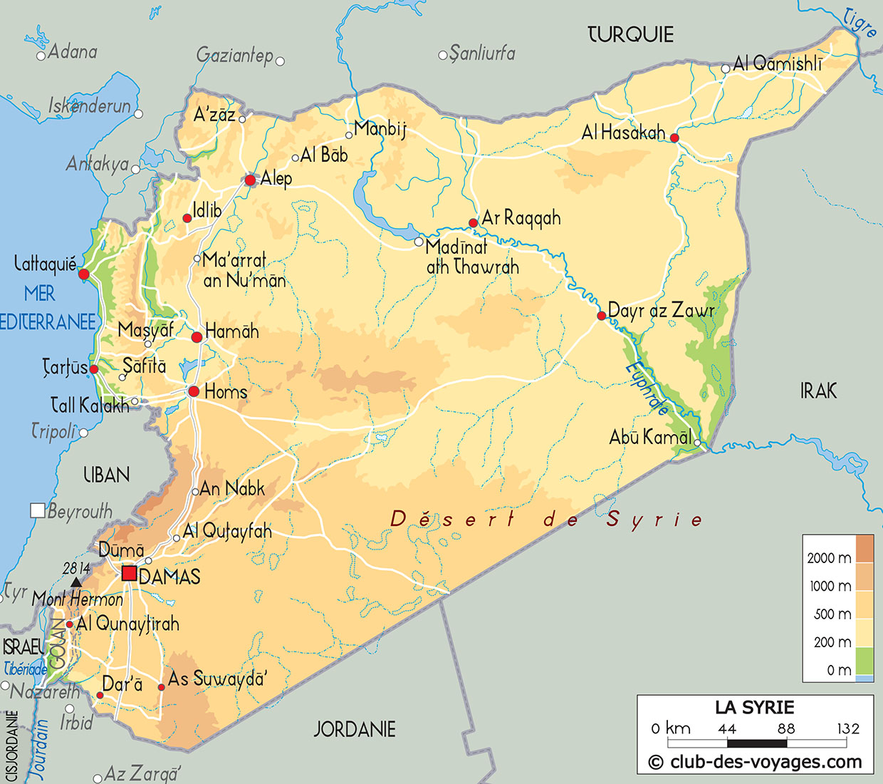 Nos différentes cartes de la Syrie à explorer: carte physique, carte routière, vue satellite. Pour tout savoir sur la géographie de la Syrie.