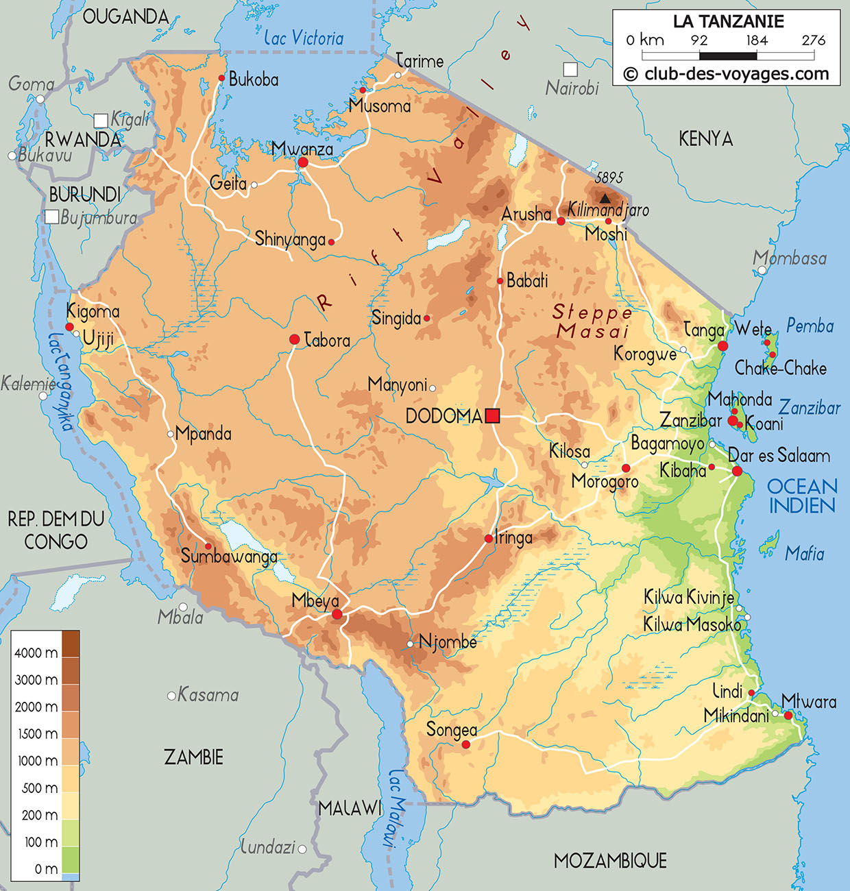 Nos différentes cartes de la Tanzanie à explorer: carte physique, carte routière, vue satellite. Pour tout savoir sur la géographie de la Tanzanie.