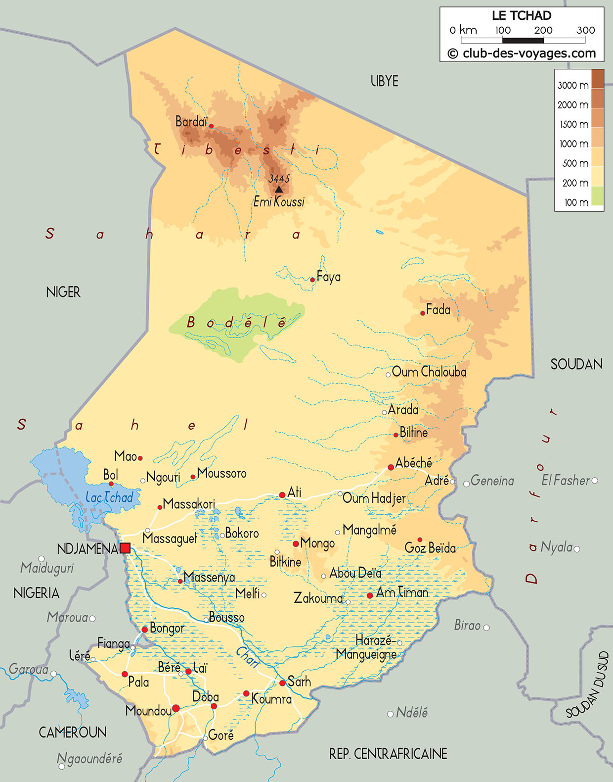 Nos différentes cartes du Tchad à explorer: carte physique, carte routière, vue satellite. Pour tout savoir sur la géographie du Tchad.