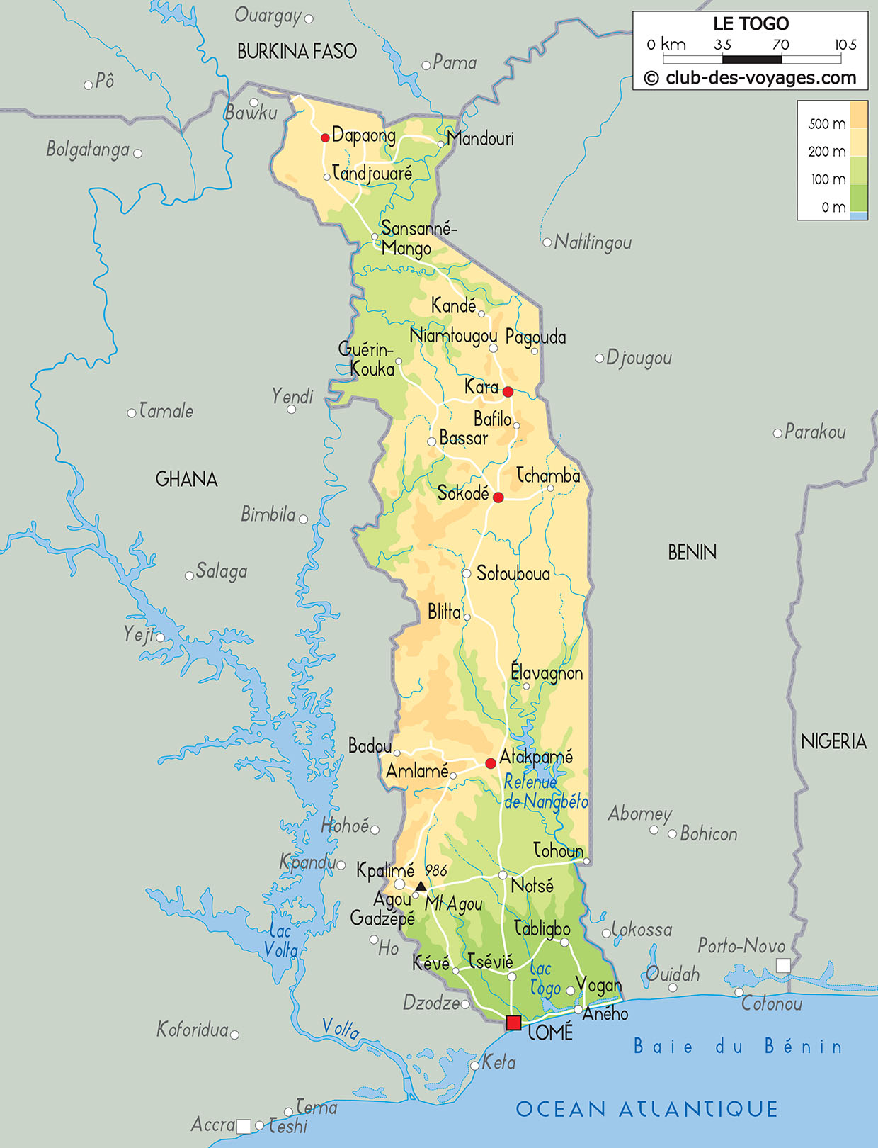 Nos différentes cartes du Togo à explorer: carte physique, carte routière, vue satellite. Pour tout savoir sur la géographie du Togo.