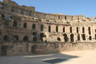 Dans la petite bourgade d'El Jem s'élèvent les ruines impressionnantes du plus grand colisée d'Afrique du Nord, immense amphithéâtre où pouvaient prendre place 35 000 spectateurs. Cette construction du IIIe siècle illustre l'extension et la grandeur de l'Empire romain.