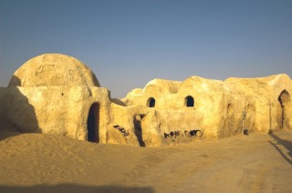 Voici un endroit qui plaira aux amateurs de science fiction et notamment de la fameuse Guerre des Etoiles, ou Star Wars. Ong Jemel, près de Nefta, est en effet le site qui servi de lieu de tournage aux scènes sur la planète Tatouine du célèbre film. Tous les décors ont été laissés sur place. Malheureusement le sable et le vent les érodent chaque année un peu plus.
