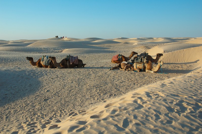 Le sahara et le grand erg oriental : Chameaux dans le désert |