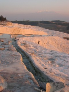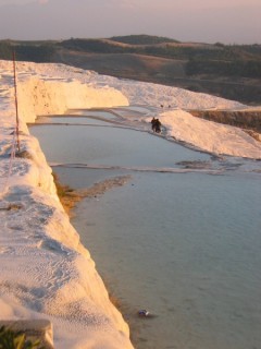 Les concrétions de calcaire blanc de Pamukkale (le "château de coton" en turc) sont l'un des symboles touristiques de la Turquie. Ce site, réputé pour les vertus curatives de ses sources chaudes, se trouve à 20 km au nord de Denizli et est inscrit au patrimoine mondial de l'humanité de l'Unesco. Pamukkale paye aujourd'hui la forte pression touristique des années passées car les sources se sont nettement taries... à tel point que les baignades y sont devenues interdites.