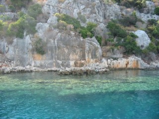 Sur une ile voisine, jadis rattachée à Kekova avant d'en être séparée par un tremblement de terre, on peut apercevoir au fond de l'eau les ruines [Suite...]