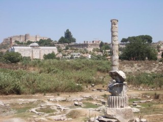 Le temple d'Artémis, ou Artémision, à Ephèse, était considéré comme l'une des sept merveilles du monde antique. A cette époque, le temple était situé en bord de mer. Il est aujourd'hui à 5 km du rivage. Il n'en reste quasiment plus rien, excepté les fondations et une colonne.