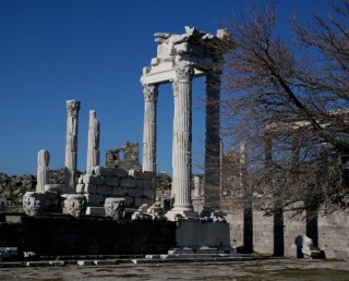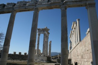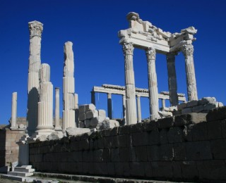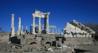 Plus tard, la ville devint la capitale de la province romaine d’Asie connue pour son Asclépieion, grand centre de cure. L’acropole domine un paysage de tumuli et de vestiges des empires romain, byzantin et ottoman répartis au bas des collines, dans la ville moderne de Bergama et alentour.