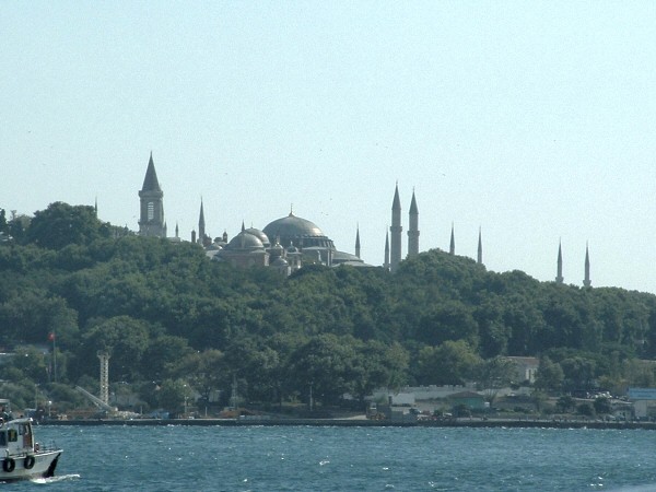 L'excursion touche à sa fin. Le ferry quitte la rive asiatique et rejoint la rive européenne et le quartier des embarcadères, Eminonü. La manoeuvre nous permet d'admirer le palais de Topkapi, dominant le Bosphore.