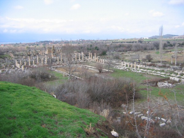 A l'époque grecque, l'agora était au centre de l'activité de la cité : lieu de réunion publique, de discussions politiques etc... La vaste agora d'Aphrodisias (205 x 120 mètres) était entourée de portiques.