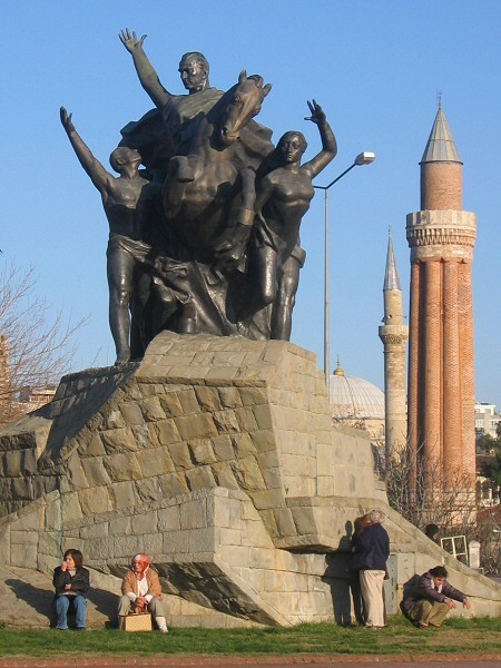 Les quartiers moderne d'Antalya : Statue d'Atatürk et la jeunesse turque |