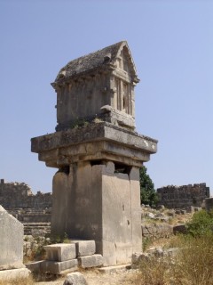 Xanthos était la plus grande ville de la Lycie antique, au sud-ouest de la Turquie. Elle fut occupée entre le VIIe siècle avant JC et le XIIe siècle de notre ère. Les Lyciens qui l'habitaient avaient une civilisation originale située à mi-chemin entre l'empire perse et la civilisation grecque. La ville fut ainsi sous l'autorité du roi de Perse, jusqu'au IVe siècle avant JC, où elle tomba sous la domination grecque suite aux conquètes d'Alexandre le Grand. La ville antique était très grande et plusieurs de ses monuments sont encore partiellement debout : rempart, théâtre, et tombeaux. Les monuments les plus remarquables sont les six piliers funéraires (dont cinq encore debout), une spécialité lycienne. Non loin de Xanthos se trouve le Létôon, le principal sanctuaire religieux de la Lycie antique. Il s'agit de cet ensemble Xanthos et Létôon qui est inscrit sur la liste du patrimoine mondial de l'Unesco.
