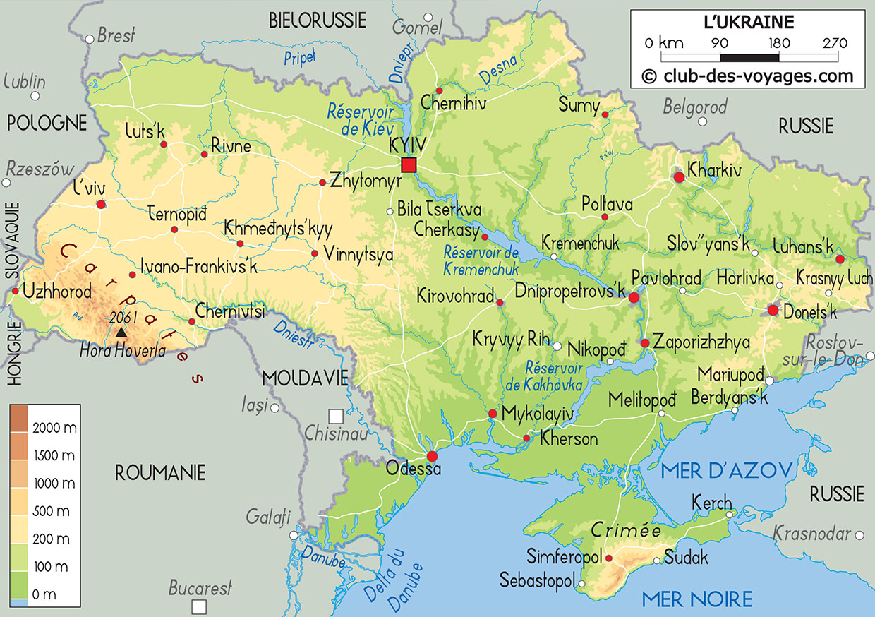 Nos différentes cartes de l'Ukraine à explorer: carte physique, carte routière, vue satellite. Pour tout savoir sur la géographie de l'Ukraine.
